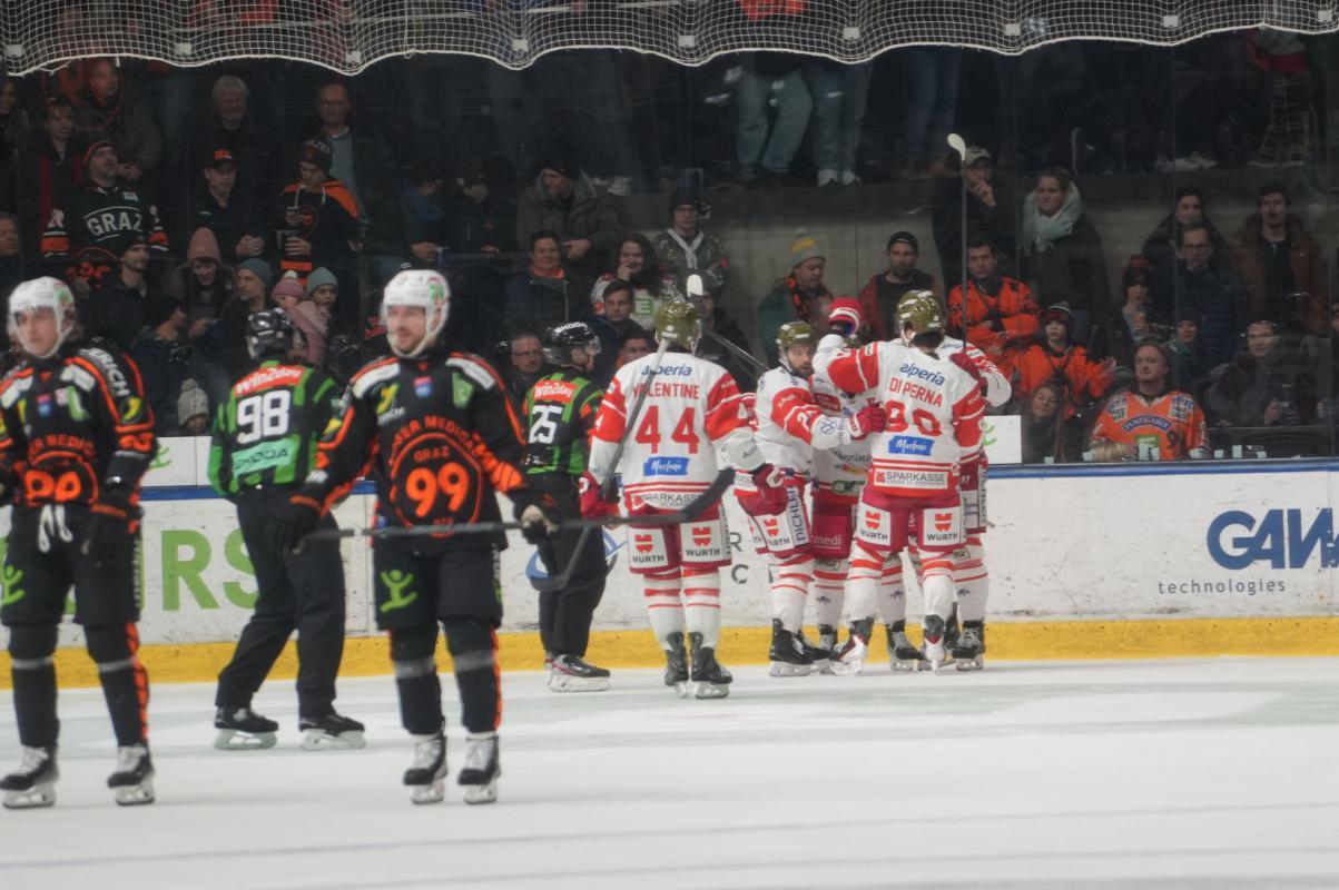 Despite two Graz power plays in the final stages of the game, the visitors managed to force overtime, which ultimately ended without a goal. Josh Currie's individual effort sealed the Foxes' defeat, but they can still take many positives from the evening. The Foxes' next game is on Sunday when the struggling Villacher SV visits the Eiswelle (16 p.m.).