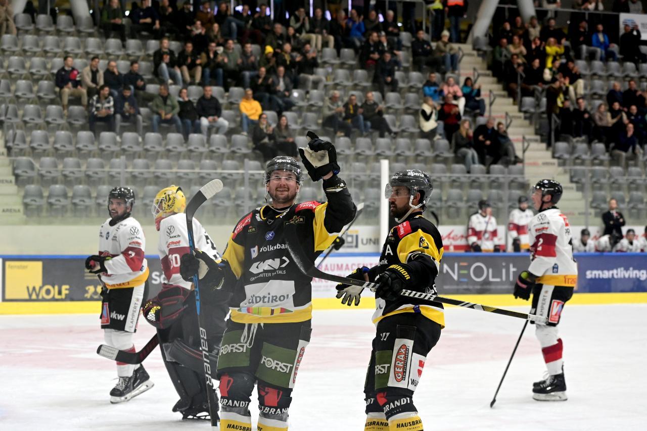 Jason Akeson (front) has amassed 119 points in 112 games for HC Pustertal. © HC Pustertal / I. Foppa