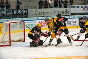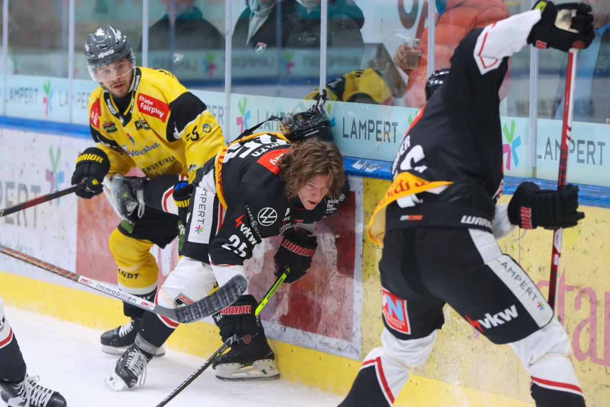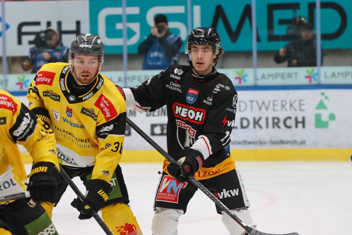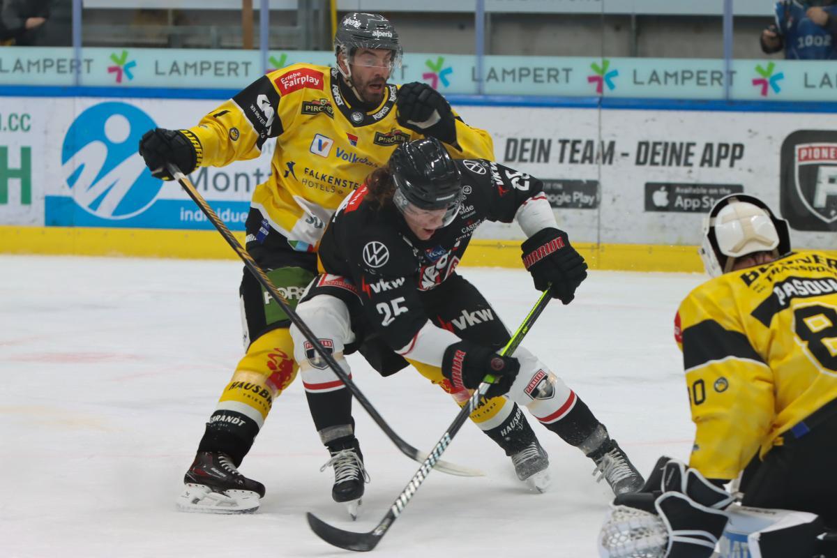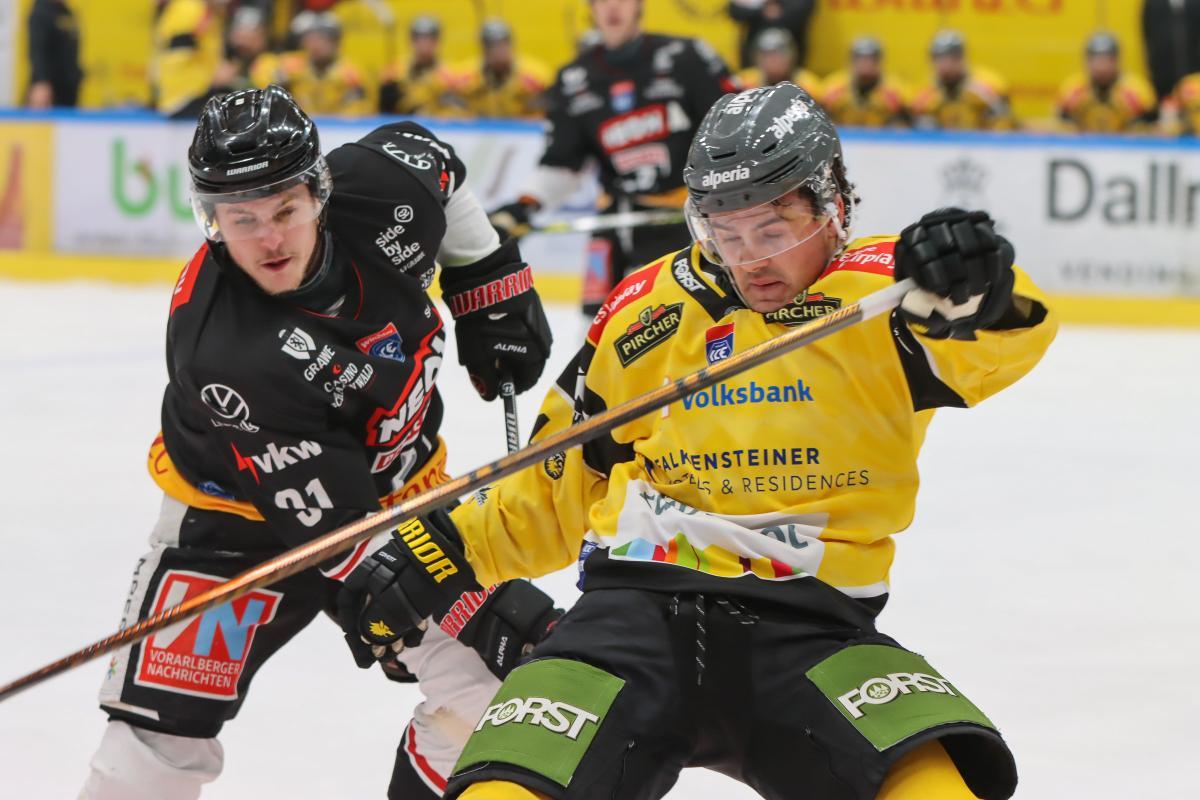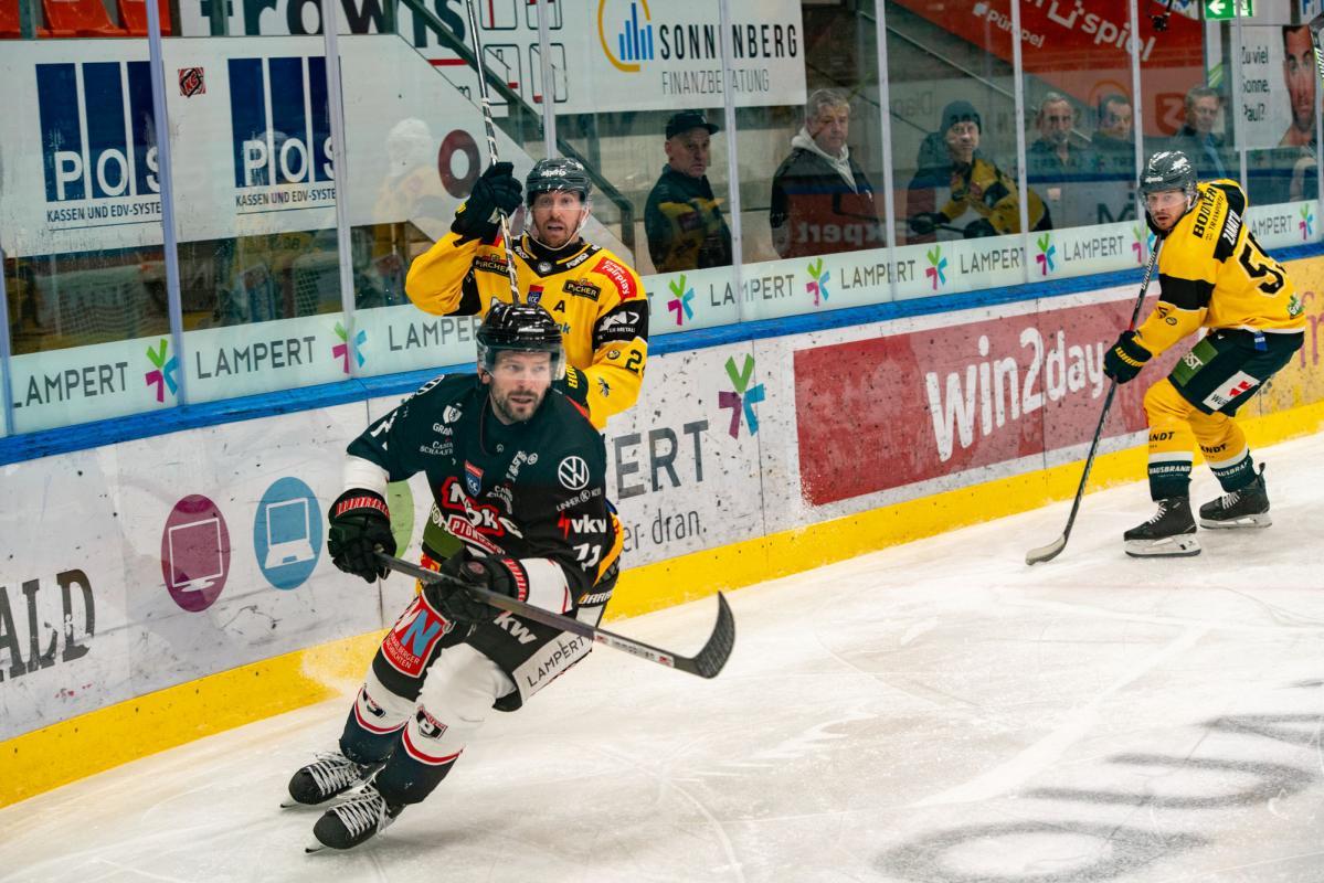 With a 3-1 lead behind them, the visitors slowed down in the final period and focused primarily on defense. This approach paid off, as the Black and Yellows stole the three points from the "Ländle" – even though Vorarlberg had reduced the deficit to 2-3 at one point. In addition to the aforementioned Rueschoff, Cole Bardreau also earned top marks once again. He provided the assist for Nick Saracino's 2-1 goal, and he himself was responsible for the 3-1 goal after Rueschoff's beautiful pass. He also scored the empty-net goal at the end.